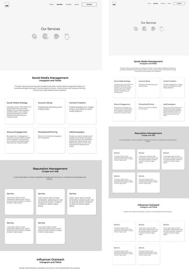 I teamed up with MK Socials, a digital marketing startup agency, to design a website that felt as inviting as their mission. MK Socials specializes in enhancing a business's social media presence and driving customer conversions. In a competitive industry, our goal was clear: goal was to stand out and forge genuine connections with potential partners.