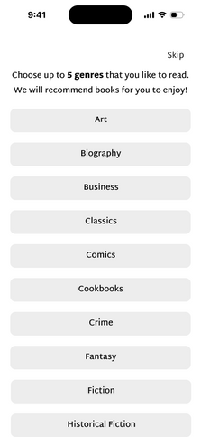 For this particular project, I focused on essential screens including sign-up, library layout, explore home layout, and the introduction of the start/end date feature and daily goal settings. If I had no constraints, the next steps would be...